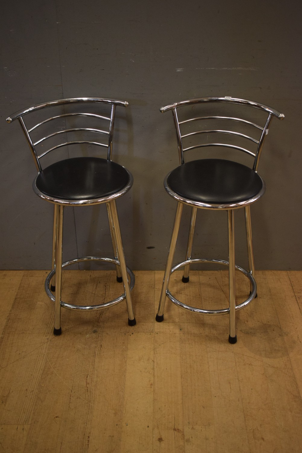 A PAIR OF CHROME SWIVEL BAR STOOLS (88H X 50W X 43D CM)(LEONARD JOEL DELIVERY SIZE: MEDIUM