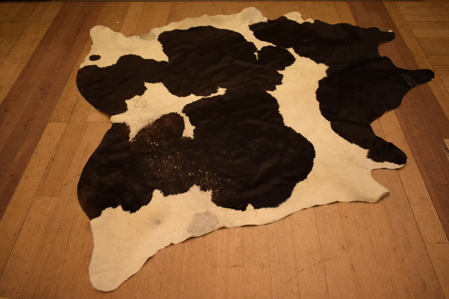 A COWHIDE RUG (A/F) (190 X 190 CM) (LEONARD JOEL DELIVERY SIZE: MEDIUM)