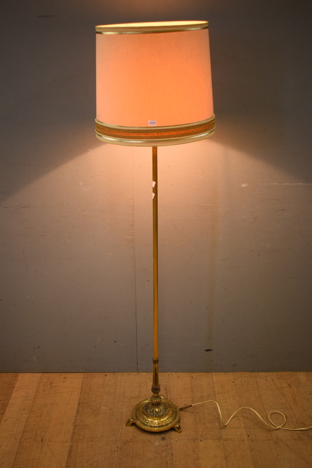 A DECORATIVE BRASS STANDARD LAMP WITH SHADE (164H x 43D CM) (LEONARD JOEL DELIVERY SIZE: MEDIUM)