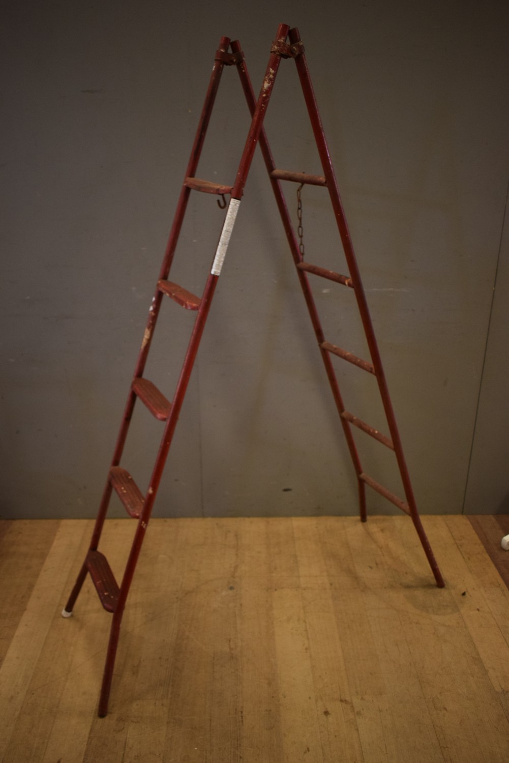 AN INDUSTRIAL RED METAL LADDER (188 CM H) (LEONARD JOEL DELIVERY SIZE: MEDIUM)