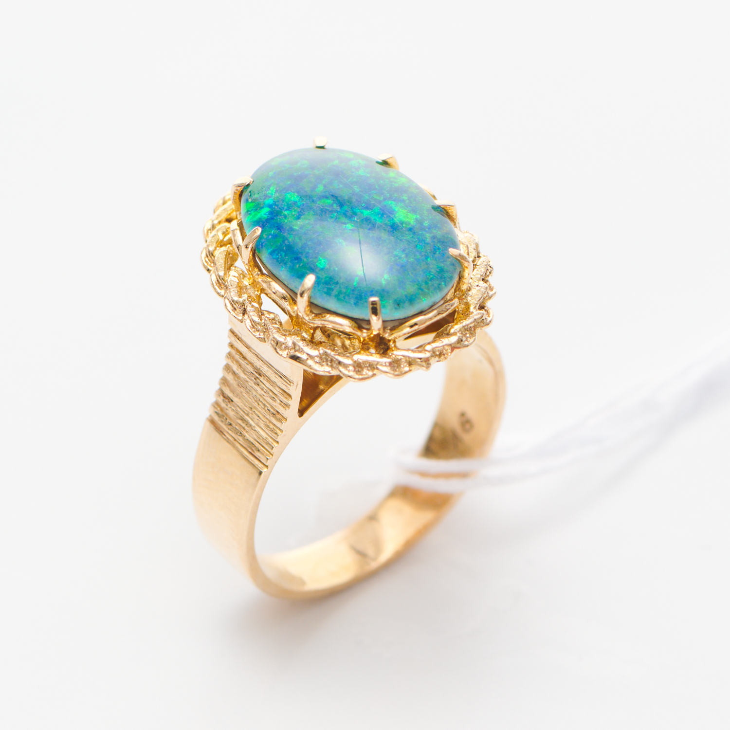 AN OPAL TRIPLET RING IN 9CT GOLD, SIZE L, 3GMS