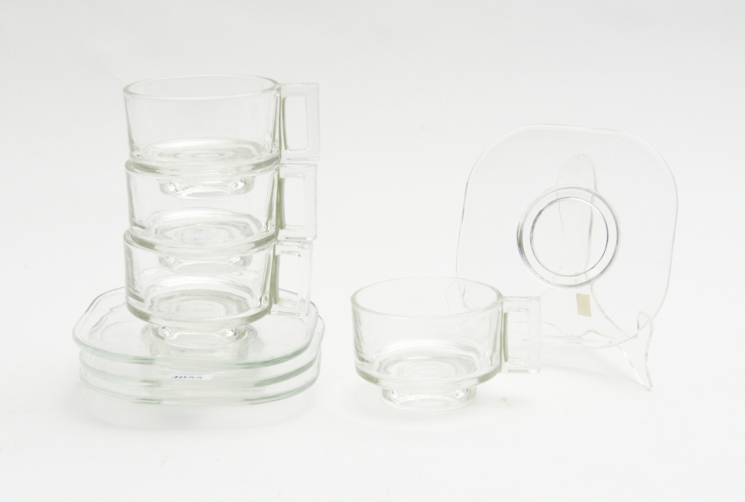 JOE COLOMBO SET OF FOUR COFFEE CUPS AND SAUCERS (A/F TO ONE HANDLE), LEONARD JOEL LOCAL DELIVERY SIZE: SMALL