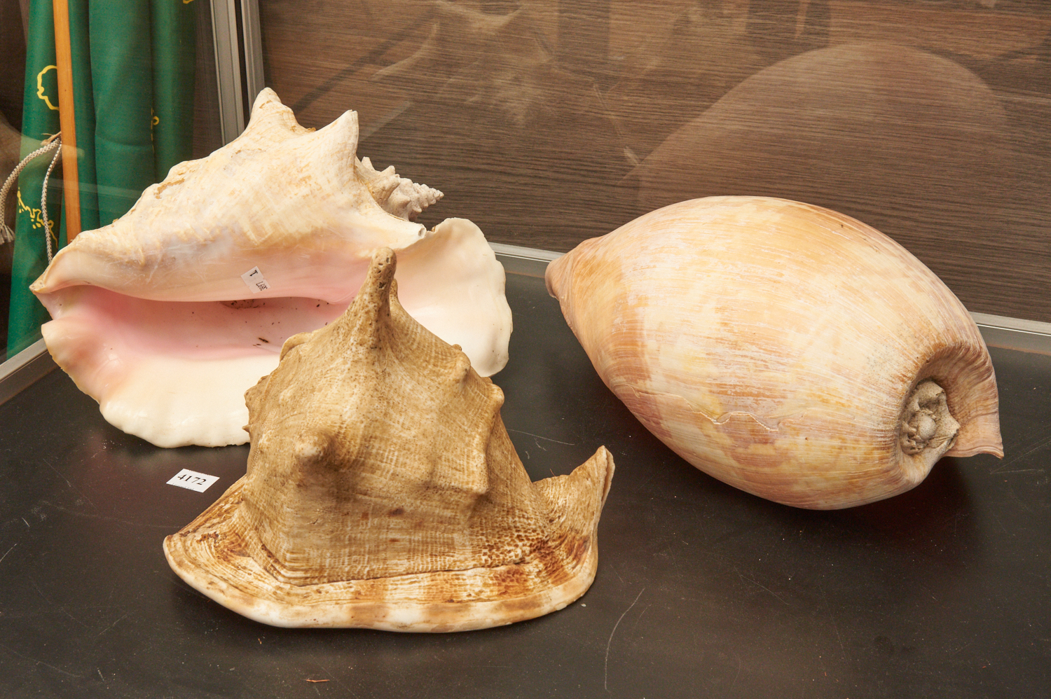 TWO LARGE CONCH SHELLS AND ONE OTHER, LEONARD JOEL LOCAL DELIVERY SIZE: SMALL