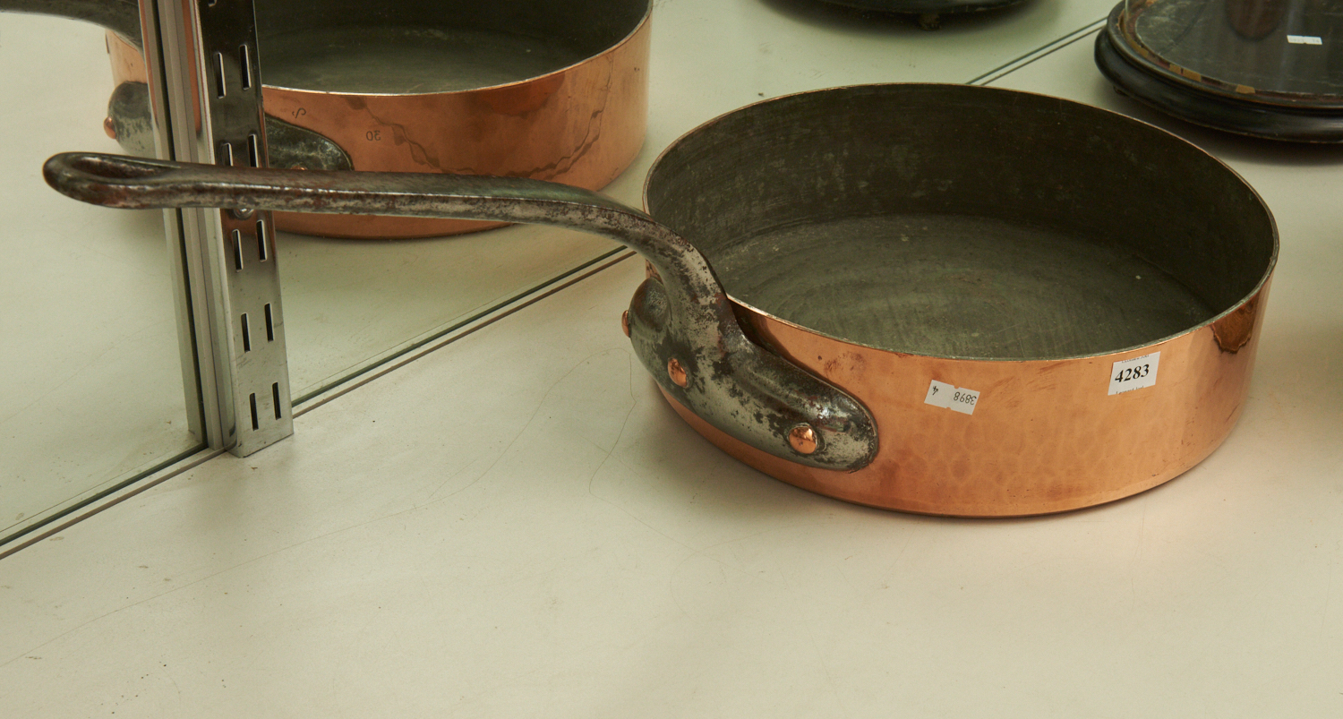 A FRENCH COPPER FRYPAN DIA.31CM, LEONARD JOEL LOCAL DELIVERY SIZE: SMALL