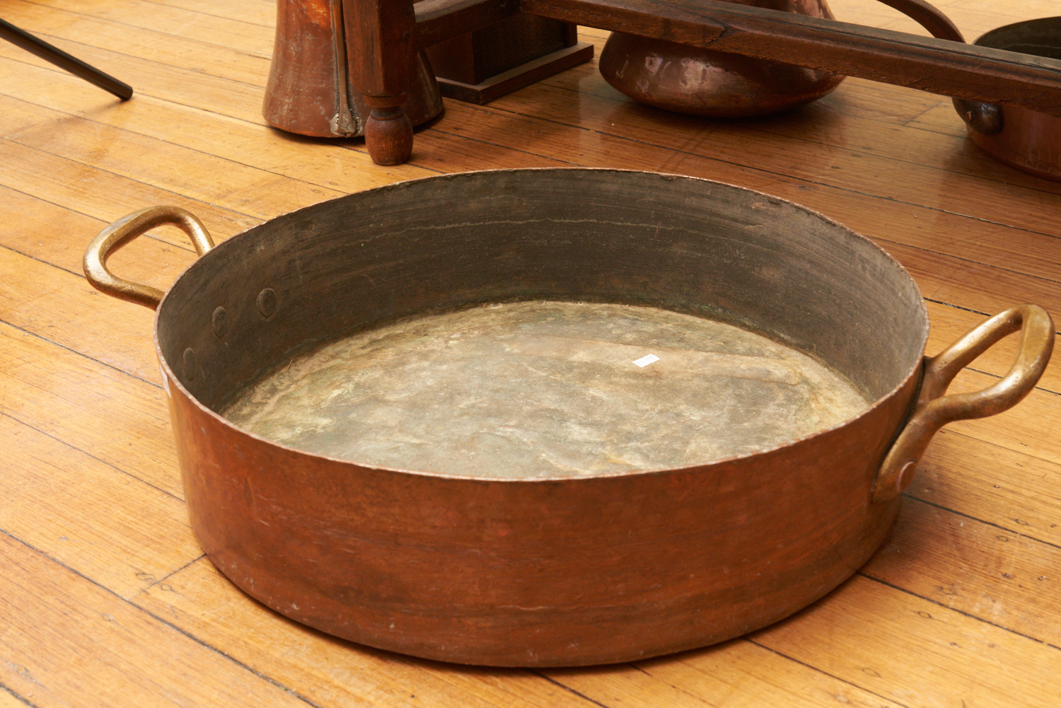 A VERY LARGE TWO HANDLED FRENCH COPPER PAN DIA.57CM, LEONARD JOEL LOCAL DELIVERY SIZE: MEDIUM