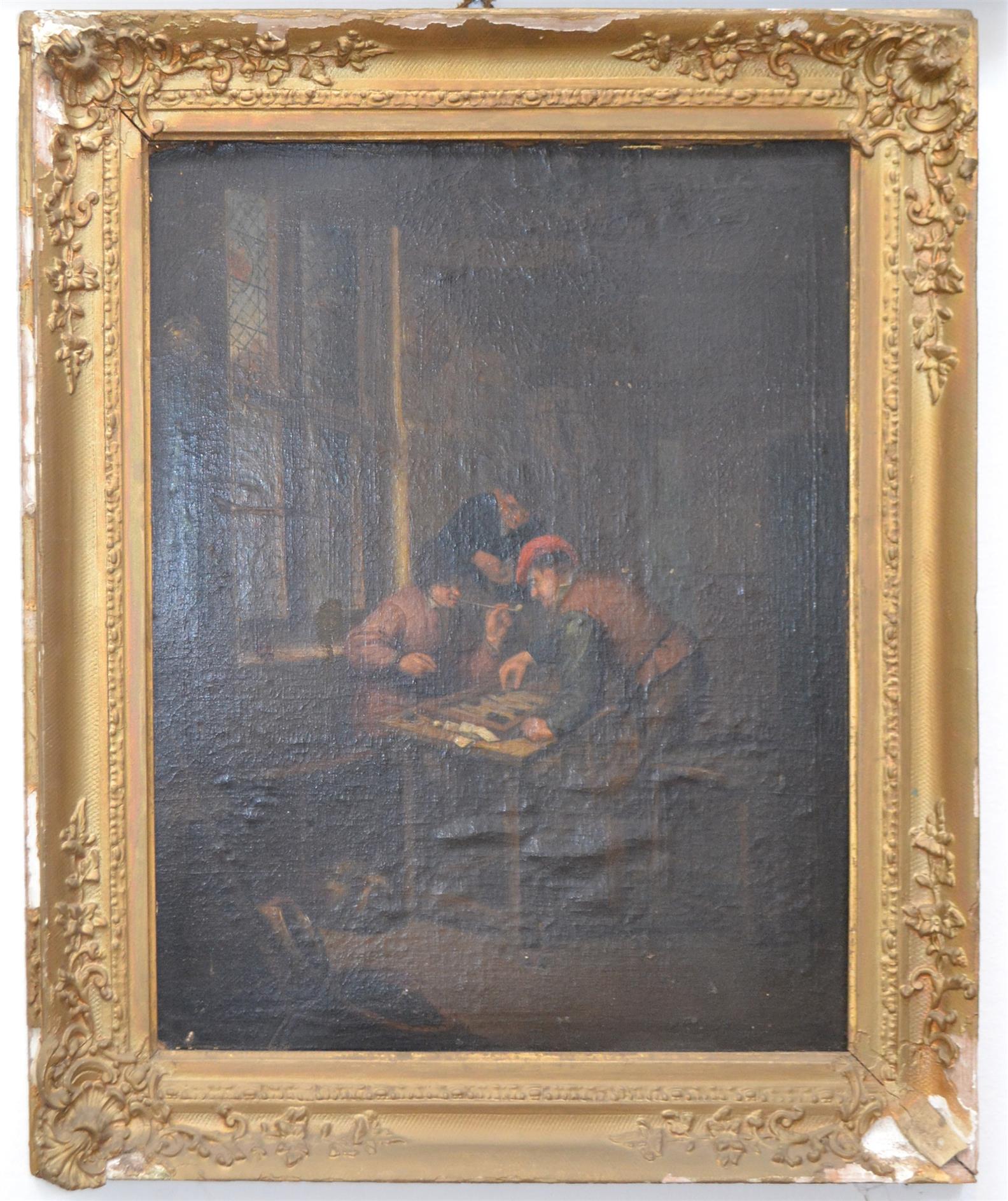 ARTIST UNKNOWN, BACKGAMMON SCENE, PAPER LAID ON BOARD, 48 X 38CM, LEONARD JOEL DELIVERY SIZE: SMALL