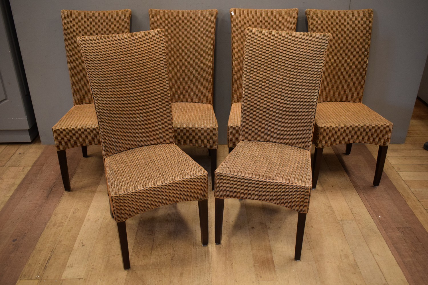 A SET OF SIX WOVEN HIGH BACK DINING CHAIRS (107H x 46W x 61D CM) (LEONARD JOEL DELIVERY SIZE: LARGE)