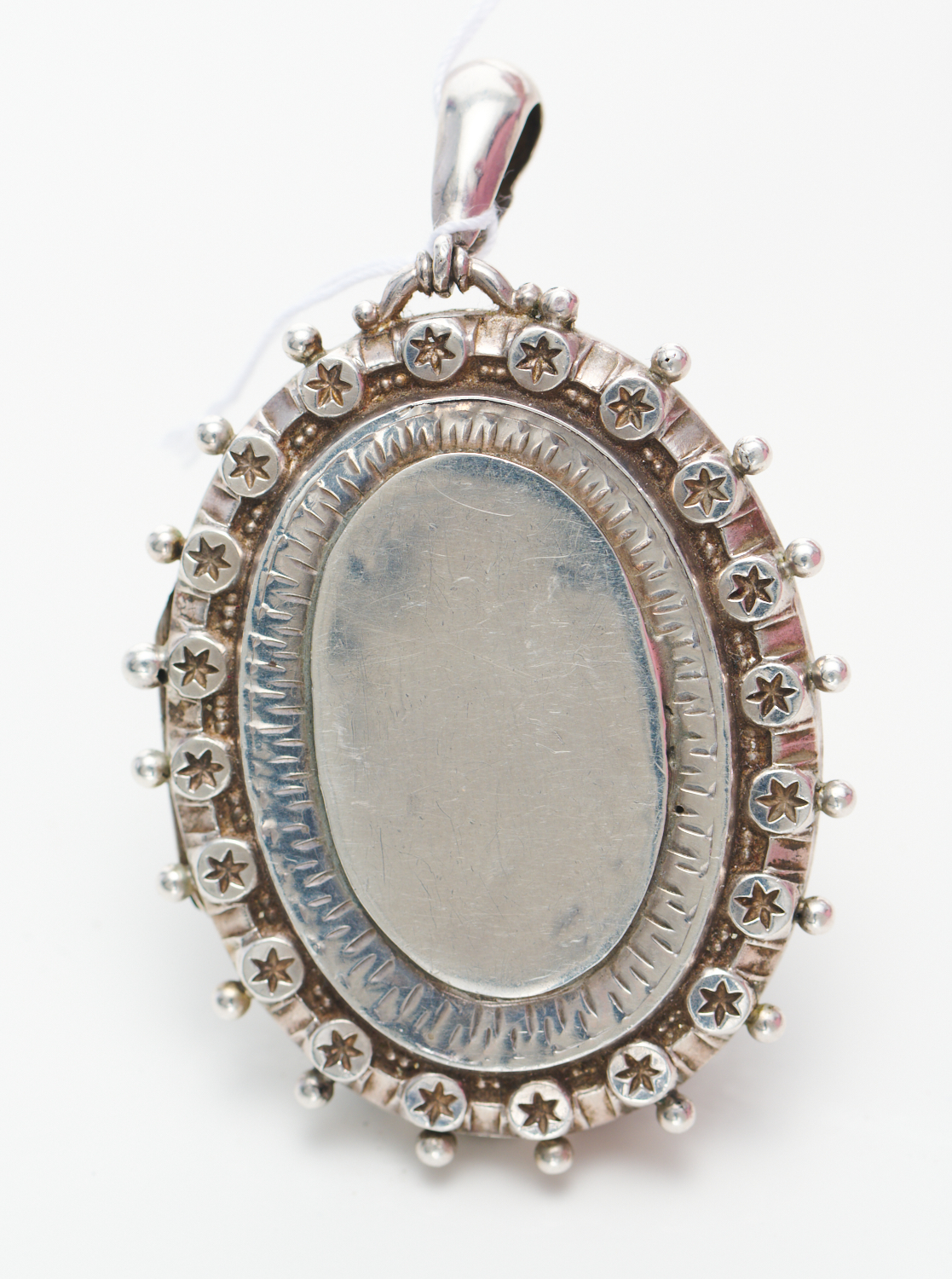 A VICTORIAN LOCKET IN SILVER, HALLMARKED BIRMINGHAM, CIRCA 1899, LENGTH 65MM INCLUDING BALE