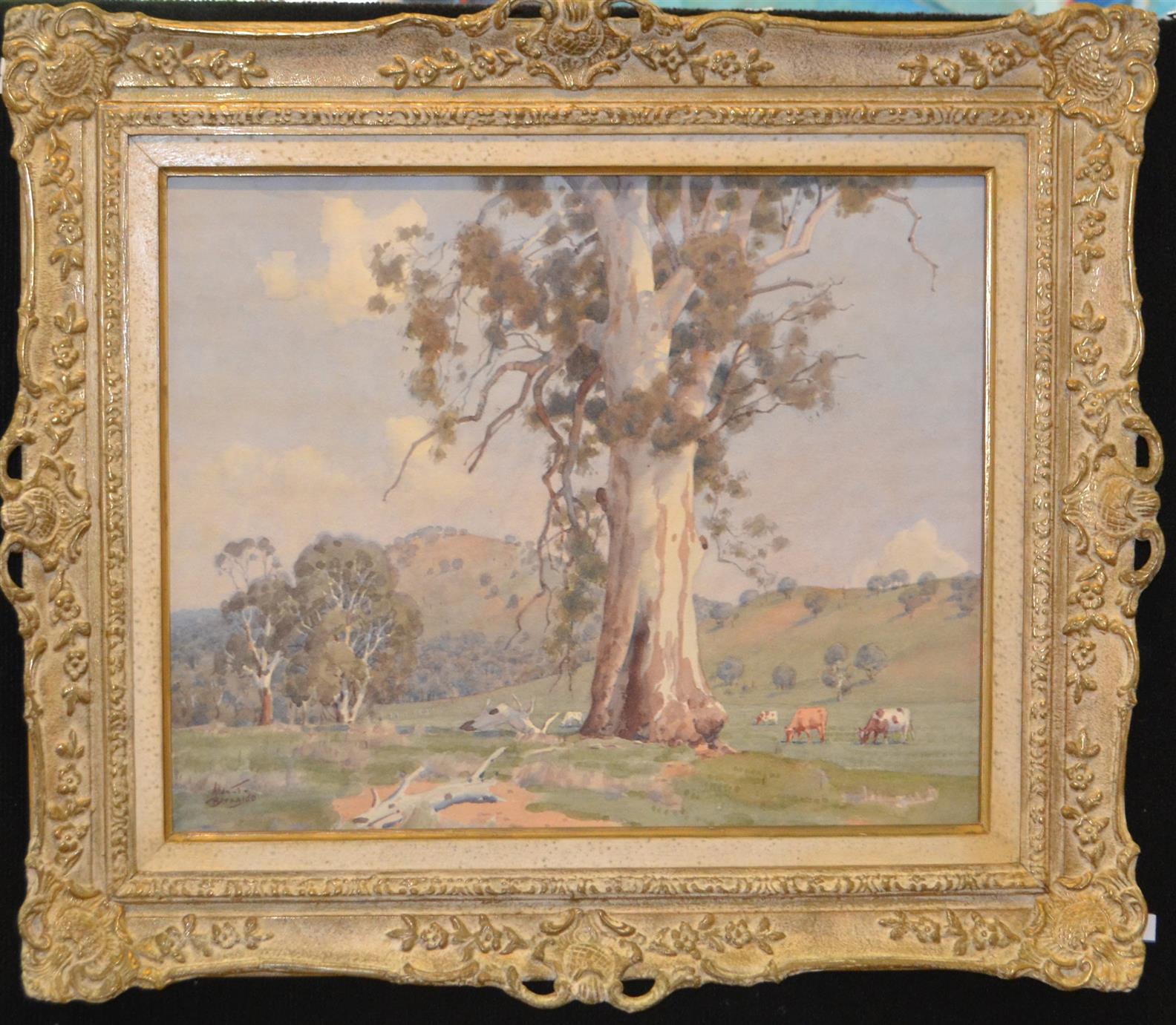 ALLAN T BERNALDO, COWS IN THE LANDSCAPE, WATERCOLOUR ON CARD, 44 X 52CM, LEONARD JOEL DELIVERY SIZE: MEDIUM