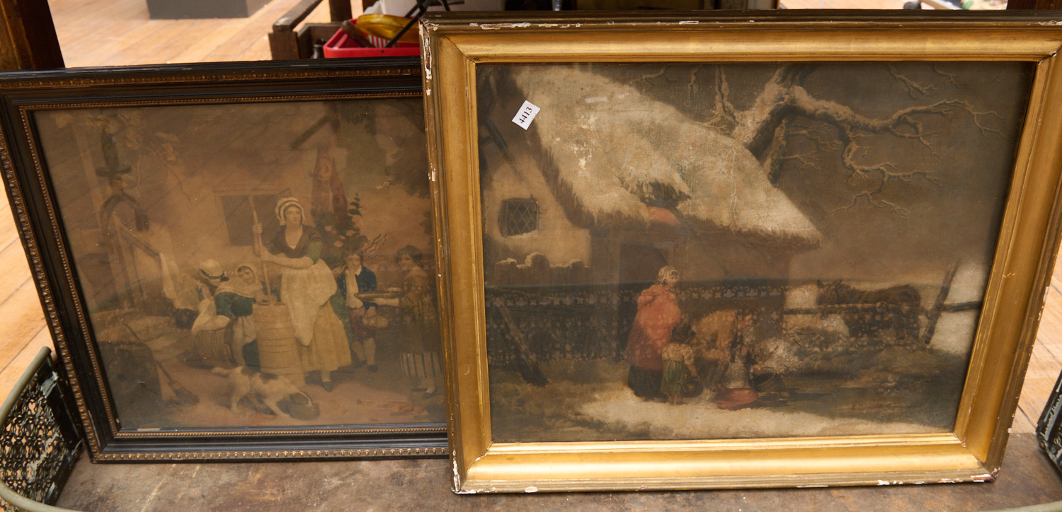 TWO LARGE FRAMED HAND COLOURED PRINTS