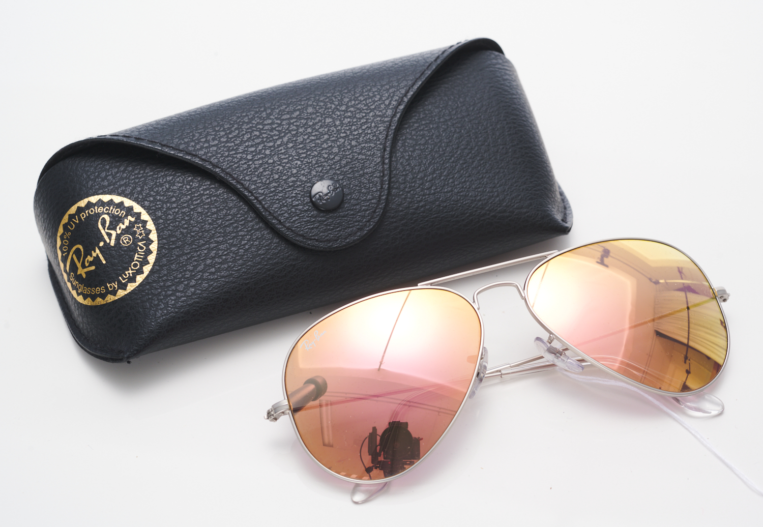 SUNGLASSES BY RAY-BAN WITH CASE, MIRROR WORN