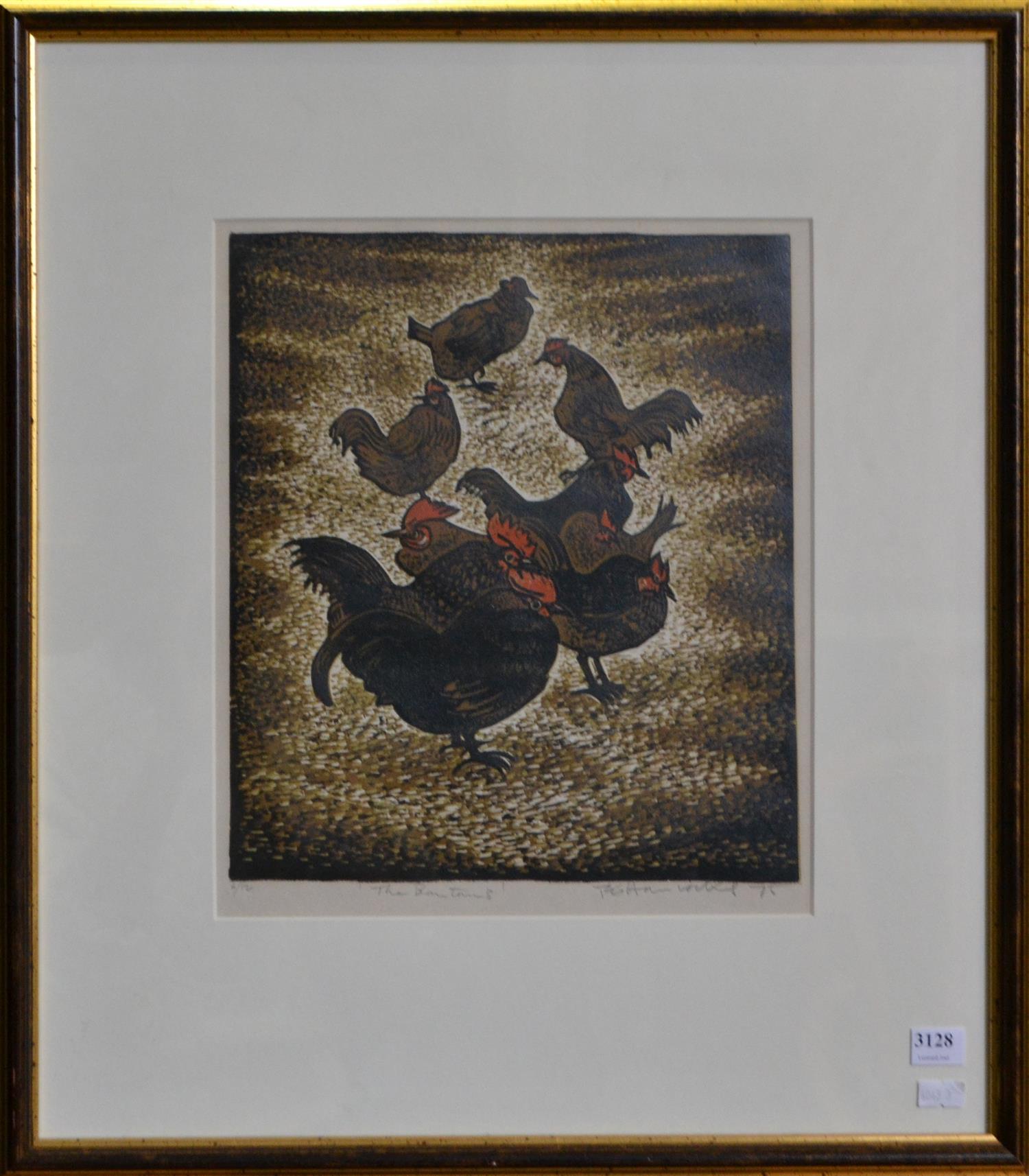 HANCOCKS, THE BANTAMS, LINOCUT 6/12, 31 X 27CM, LEONARD JOEL DELIVERY SIZE: SMALL