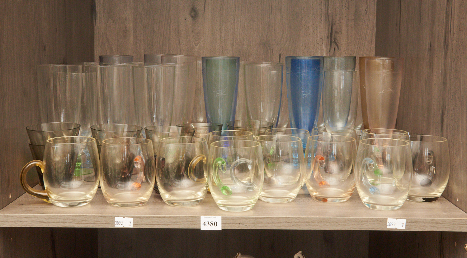 A SHELF OF ASSORTED GLASS, LEONARD JOEL LOCAL DELIVERY SIZE: SMALL