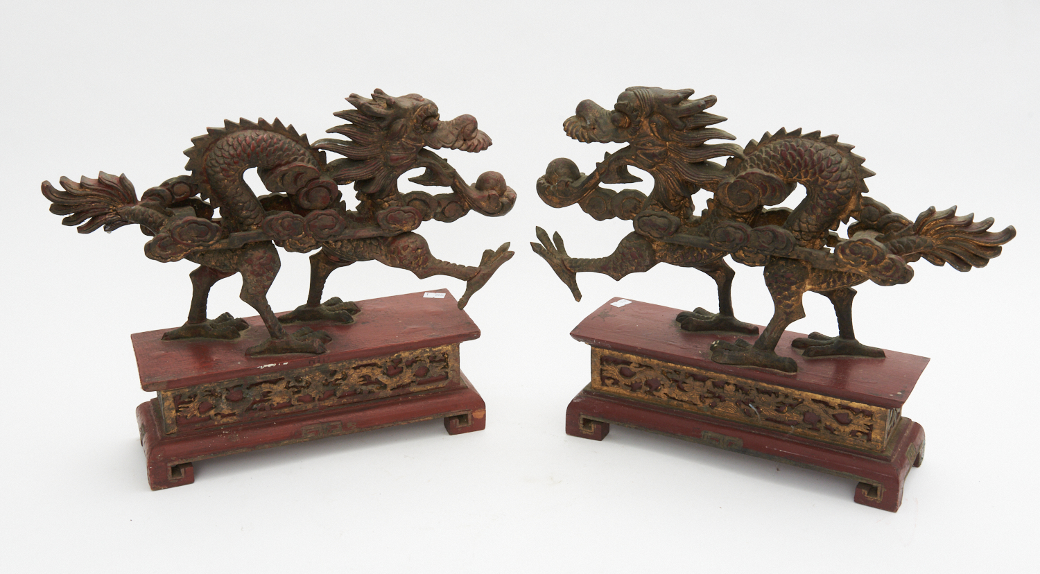 A PAIR OF CHINESE WOODEN DECORATIVE DRAGONS, LEONARD JOEL LOCAL DELIVERY SIZE: SMALL