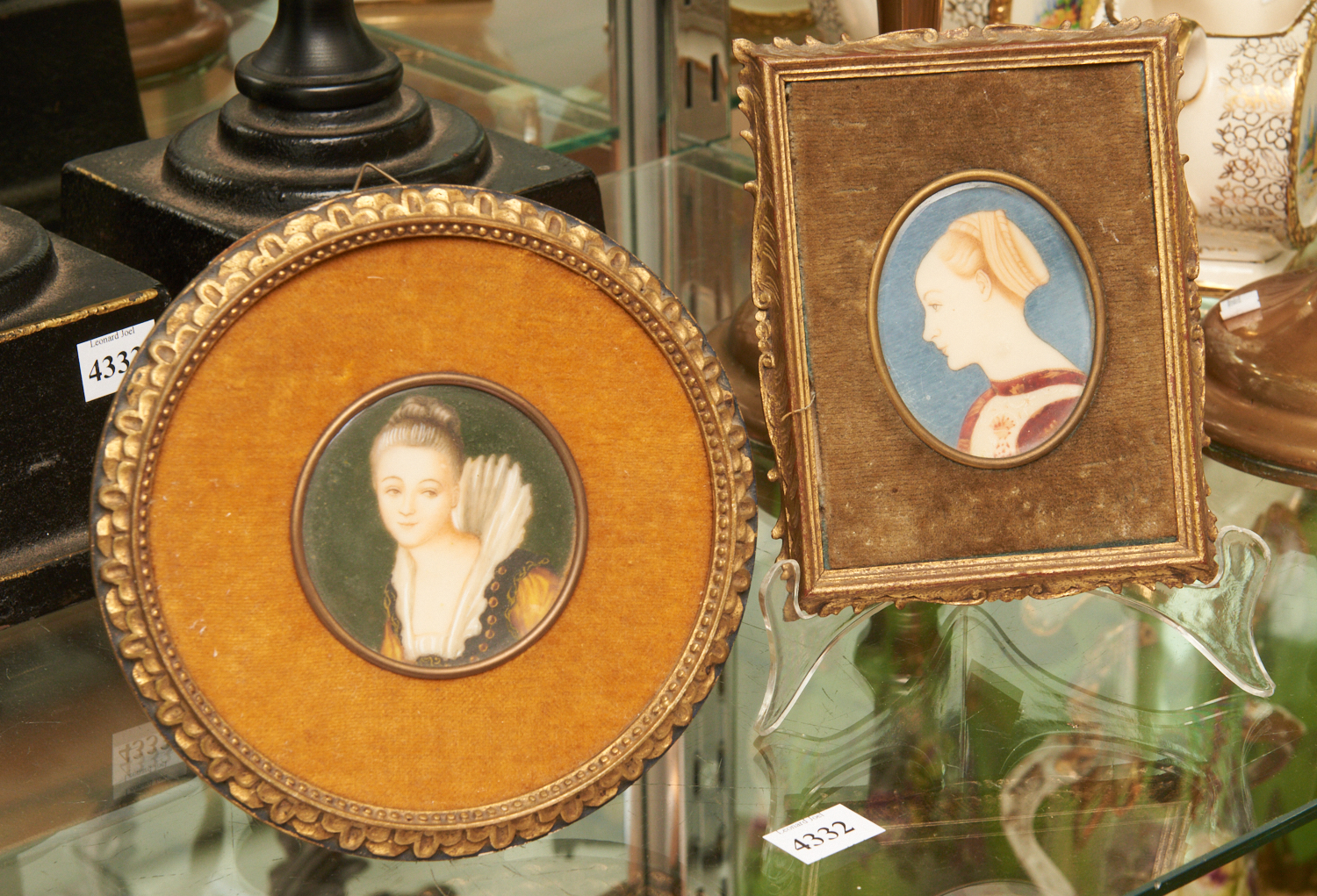 TWO HAND PAINTED PORTRAIT MINIATURES, LEONARD JOEL LOCAL DELIVERY SIZE: SMALL
