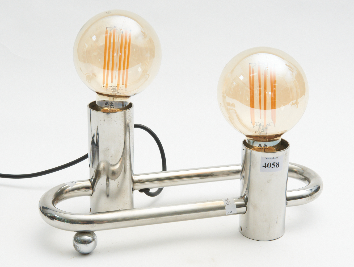 A CHROME DOUBLE GLOBE TABLE LAMP, LEONARD JOEL LOCAL DELIVERY SIZE: SMALL