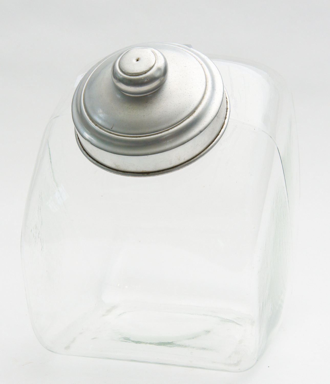A LARGE VINTAGE GLASS AND ALUMINIUM SHOP COUNTER LOLLY JAR, LEONARD JOEL LOCAL DELIVERY SIZE: SMALL