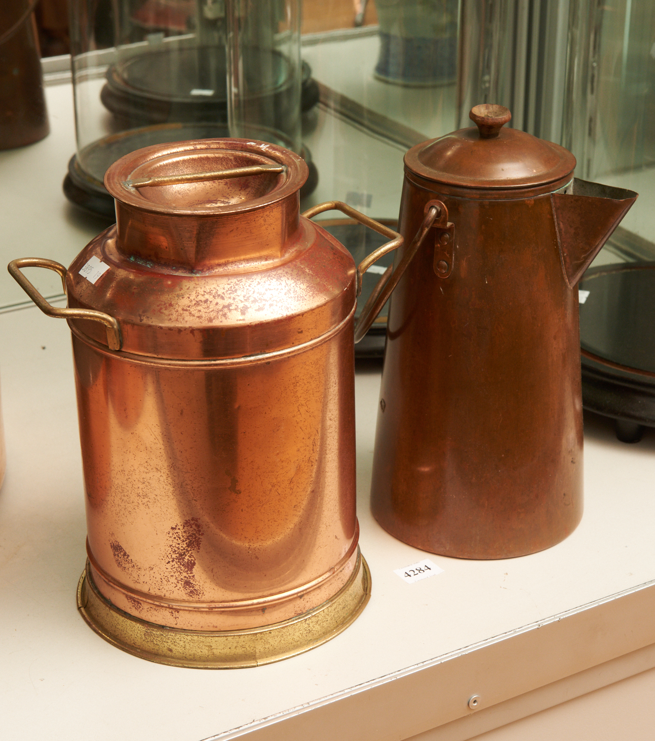 TWO VINTAGE FRENCH COPPER AND BRASS CANNISTERS INCLUDING SMALL MILK URN, LEONARD JOEL LOCAL DELIVERY SIZE: SMALL