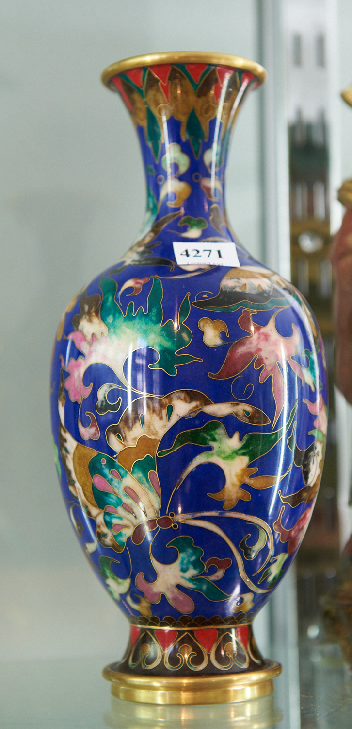 A CHINESE CLOISONNE VASE WITH BUTTERFLIES H.25CM, LEONARD JOEL LOCAL DELIVERY SIZE: SMALL
