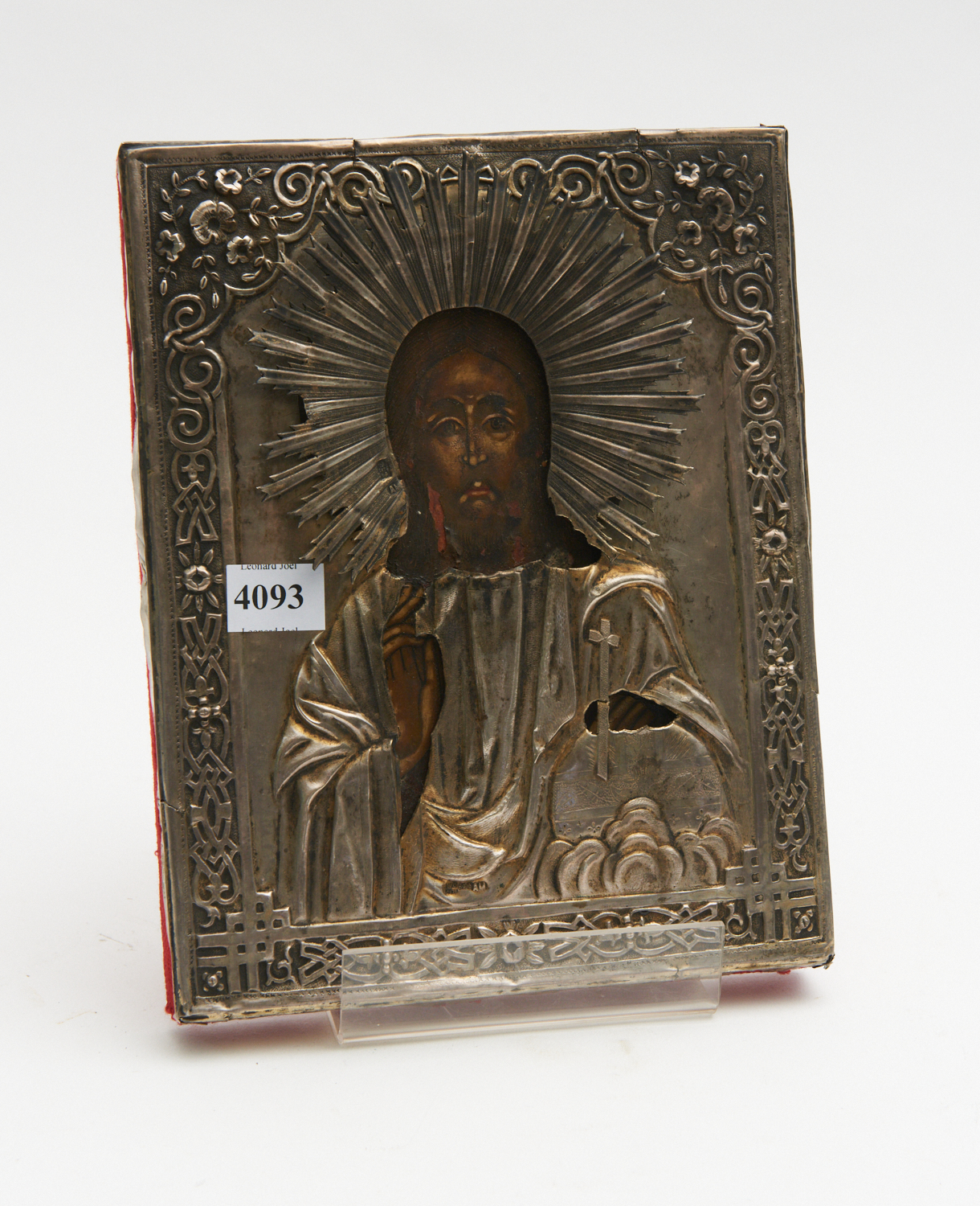 A RUSSIAN ICON 19TH CENTURY IN RIZA AND SILVER OKLAD WITH SILVER HALLMARKS, 1876, LEONARD JOEL LOCAL DELIVERY SIZE: SMALL