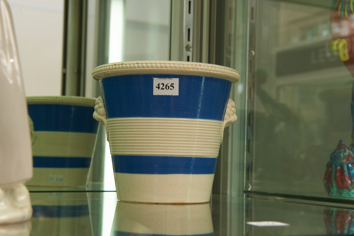 A WEDGWOOD STYLE BLUE AND WHITE POT, LEONARD JOEL LOCAL DELIVERY SIZE: SMALL