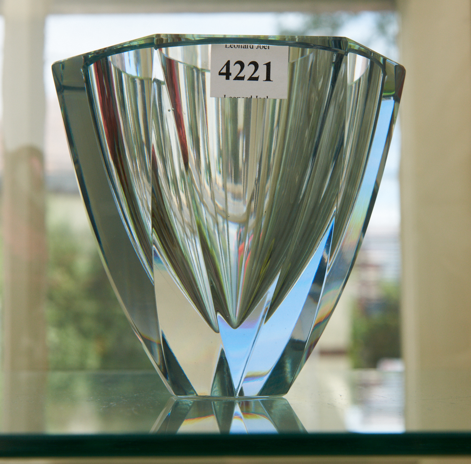 A FACETED GLASS VASE, SIGNED TO BASE, LEONARD JOEL LOCAL DELIVERY SIZE: SMALL