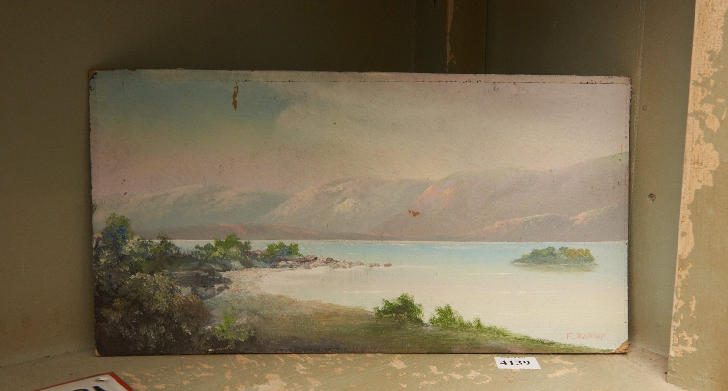 OIL ON BOARD, COASTAL SCENE, SIGNED F DUNLOP, LEONARD JOEL LOCAL DELIVERY SIZE: SMALL