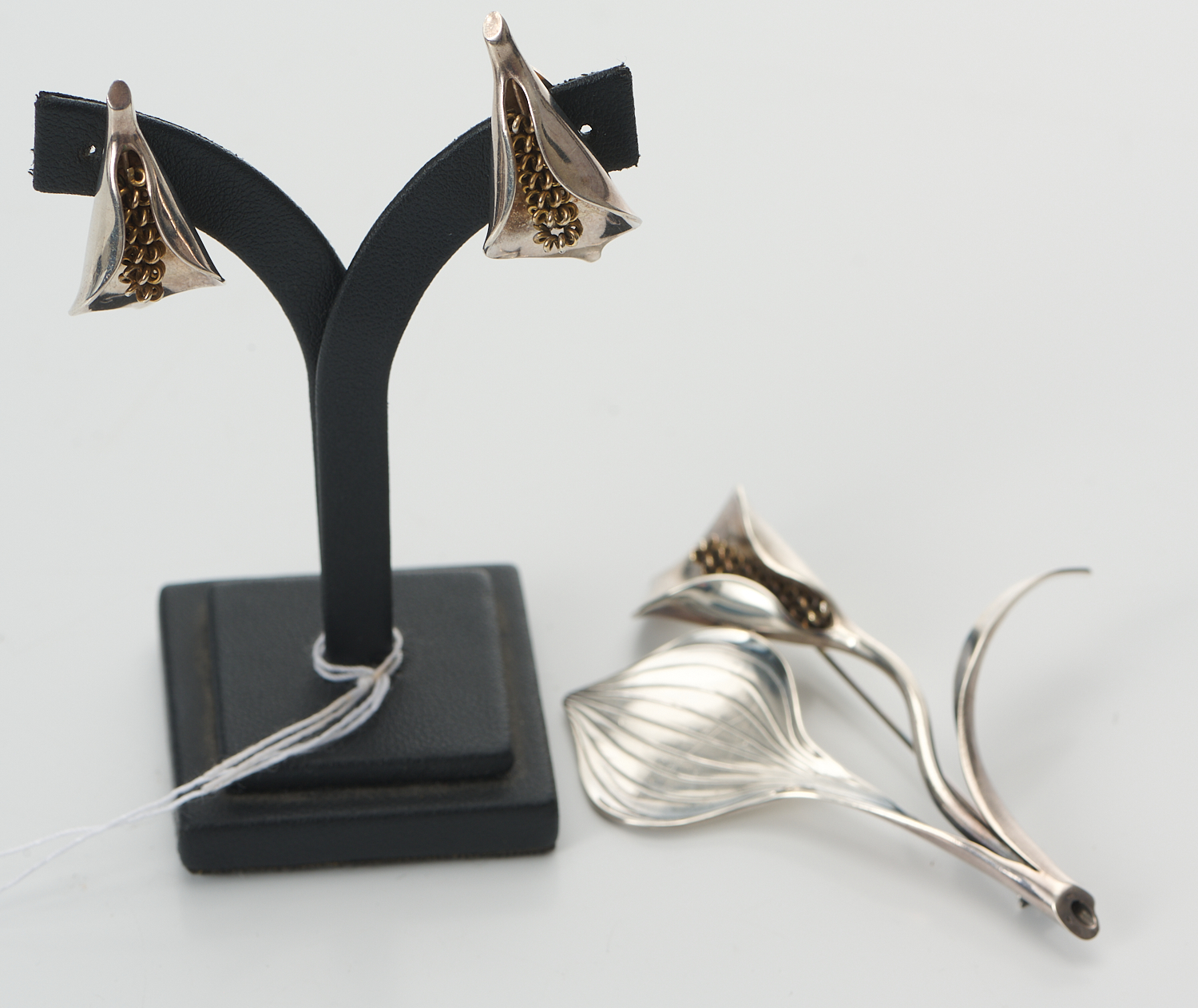 A DANISH JEWELLERY SUITE IN SILVER BY GERTRUDE ENGEL (ROUGIE), COMPRISING A BROOCH AND A PAIR OF CLIP EARRINGS, LENGTH OF BROOCH 75MM