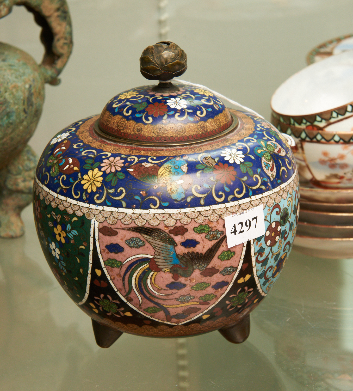 A LARGE JAPANESE CLOISONNE KORO, MEIJI PERIOD, 17.5 CM H, LEONARD JOEL LOCAL DELIVERY SIZE: SMALL