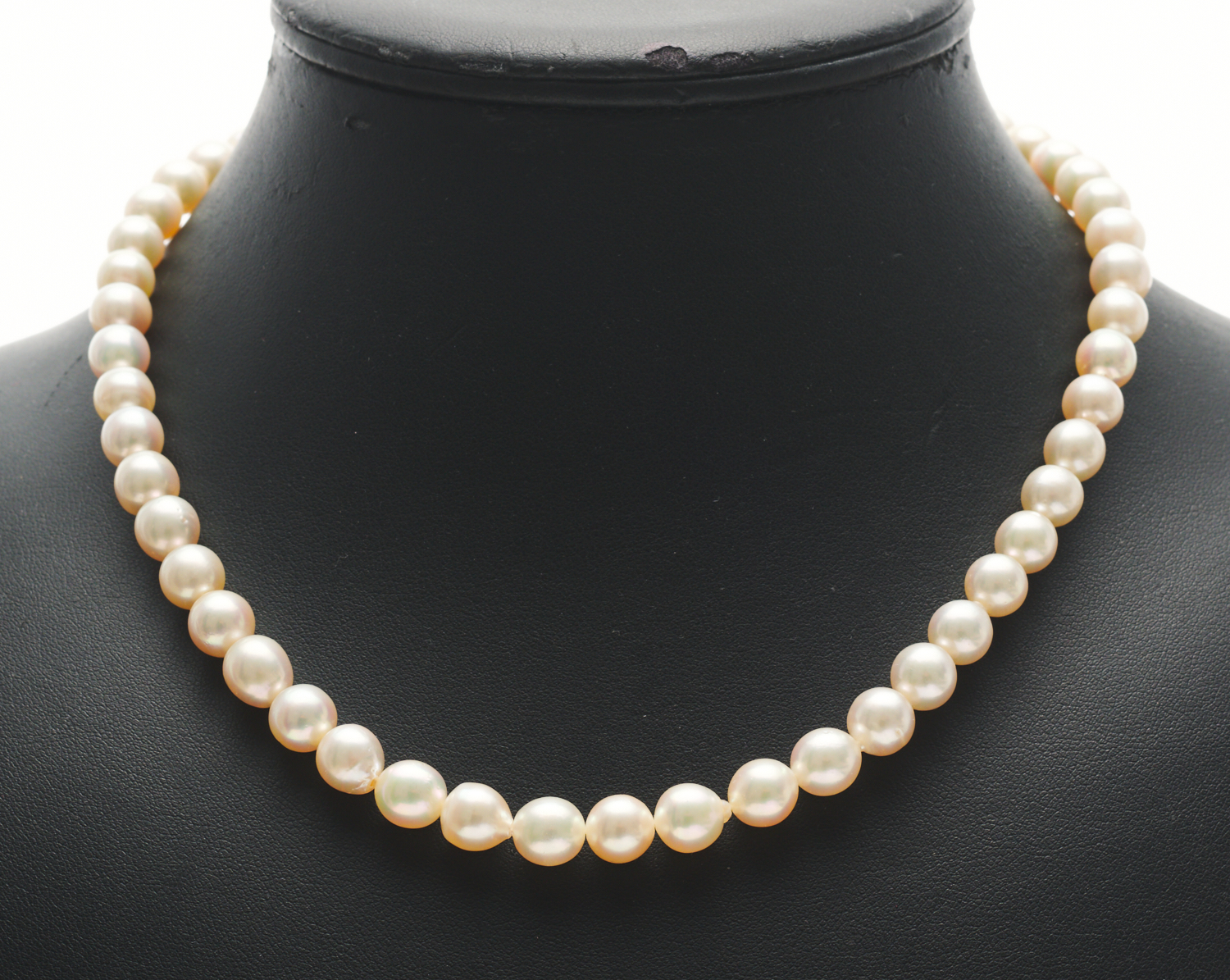 A STRAND OF CULTURED PEARLS PEARLS MEASURING 7.5MM, TO A STERLING SILVER MAGNETIC CLASP, LENGTH 44CMS