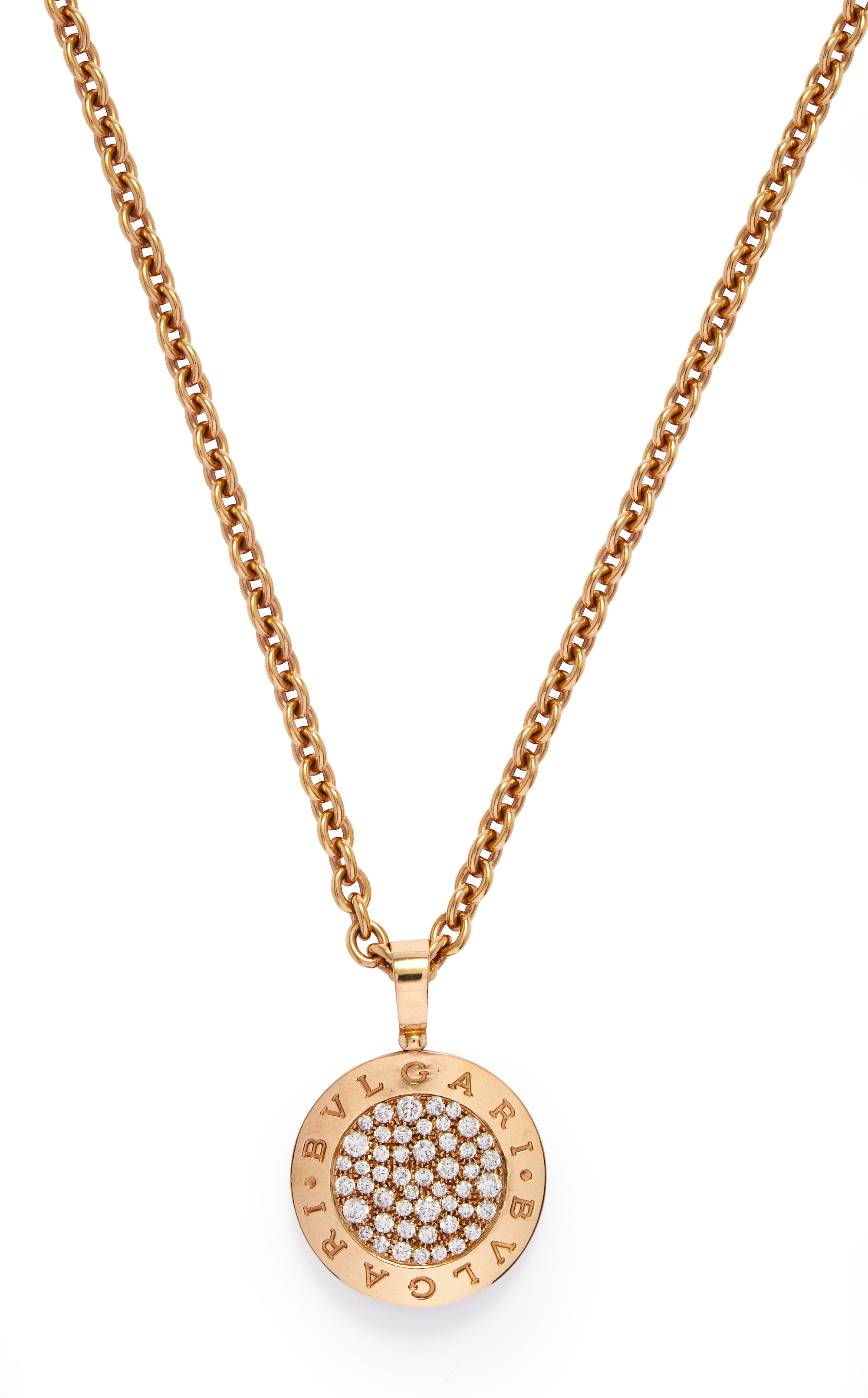18CT ROSE GOLD AND DIAMOND 'BVLGARI BVLGARI' PENDANT NECKLACE, BULGARI, CIRCA 2016