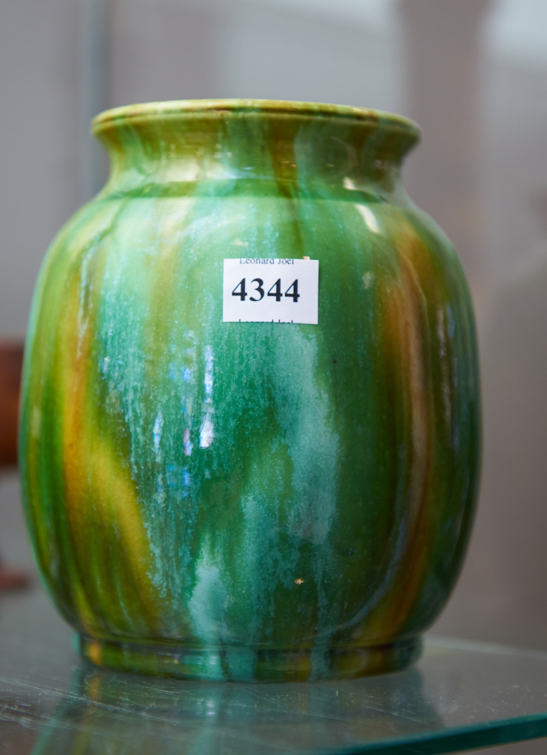 A JOHN CAMPBELL GREEN GLAZED POTTERY VASE H.16CM, LEONARD JOEL LOCAL DELIVERY SIZE: SMALL