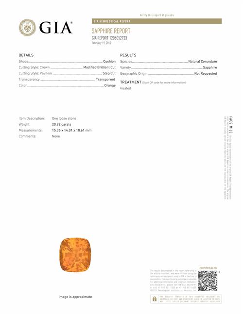 Accompanied by a GIA report numbered 1206052723, dated 19 February 2019, stating that the 20.22 carat sapphire is natural.