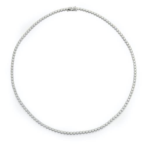 Composed of a line of 131 claw-set brilliant-cut diamonds, together weighing approximately 4.01 carats, completed by a concealed box clasp, circumference approximately 419mm.