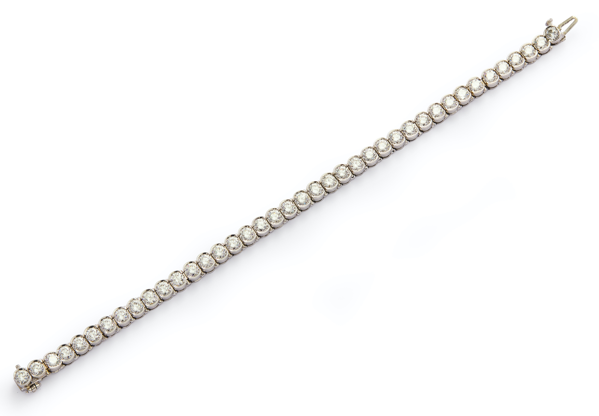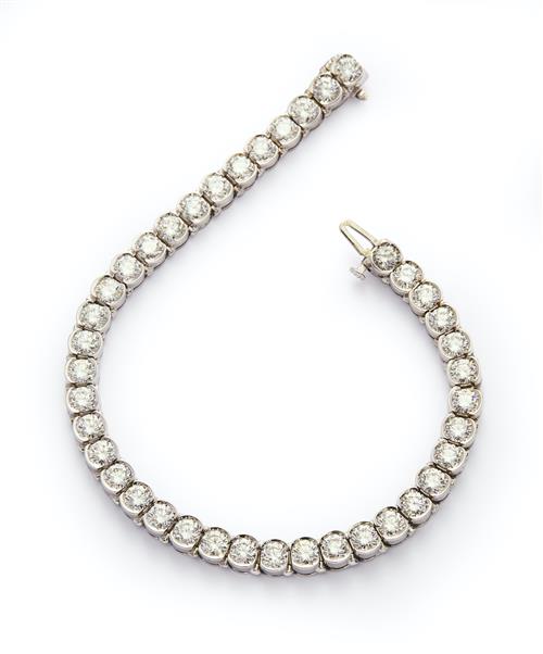 Composed of a line of 40 collet-set brilliant-cut diamonds completed by a concealed box clasp, the diamonds together weighing approximately 9.50 carats, length approximately 185mm.
