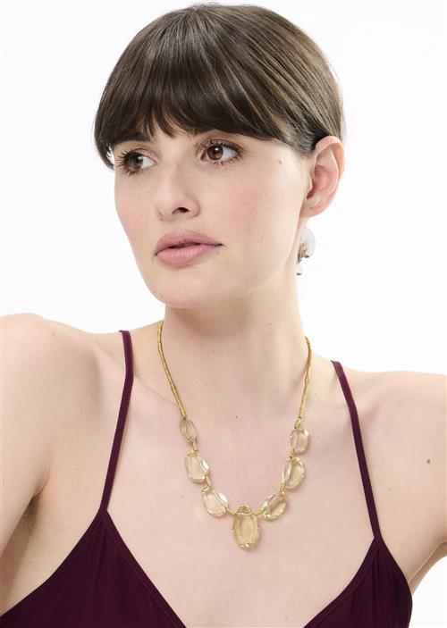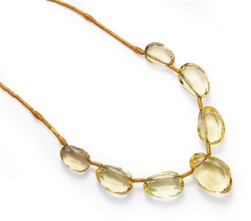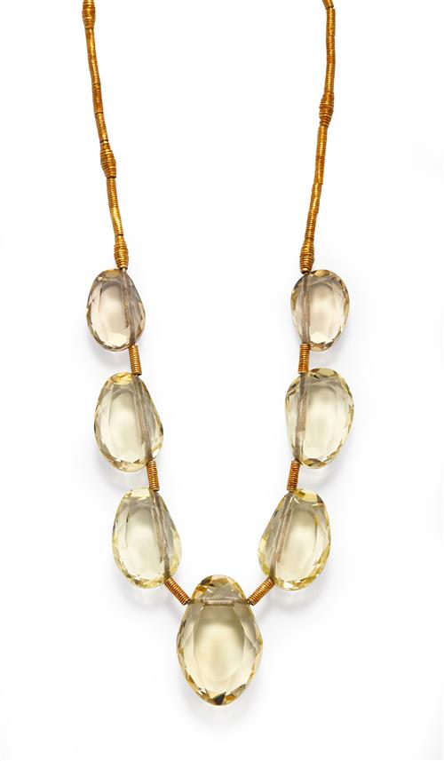 18CT GOLD, LEMON QUARTZ AND DIAMOND NECKLACE
