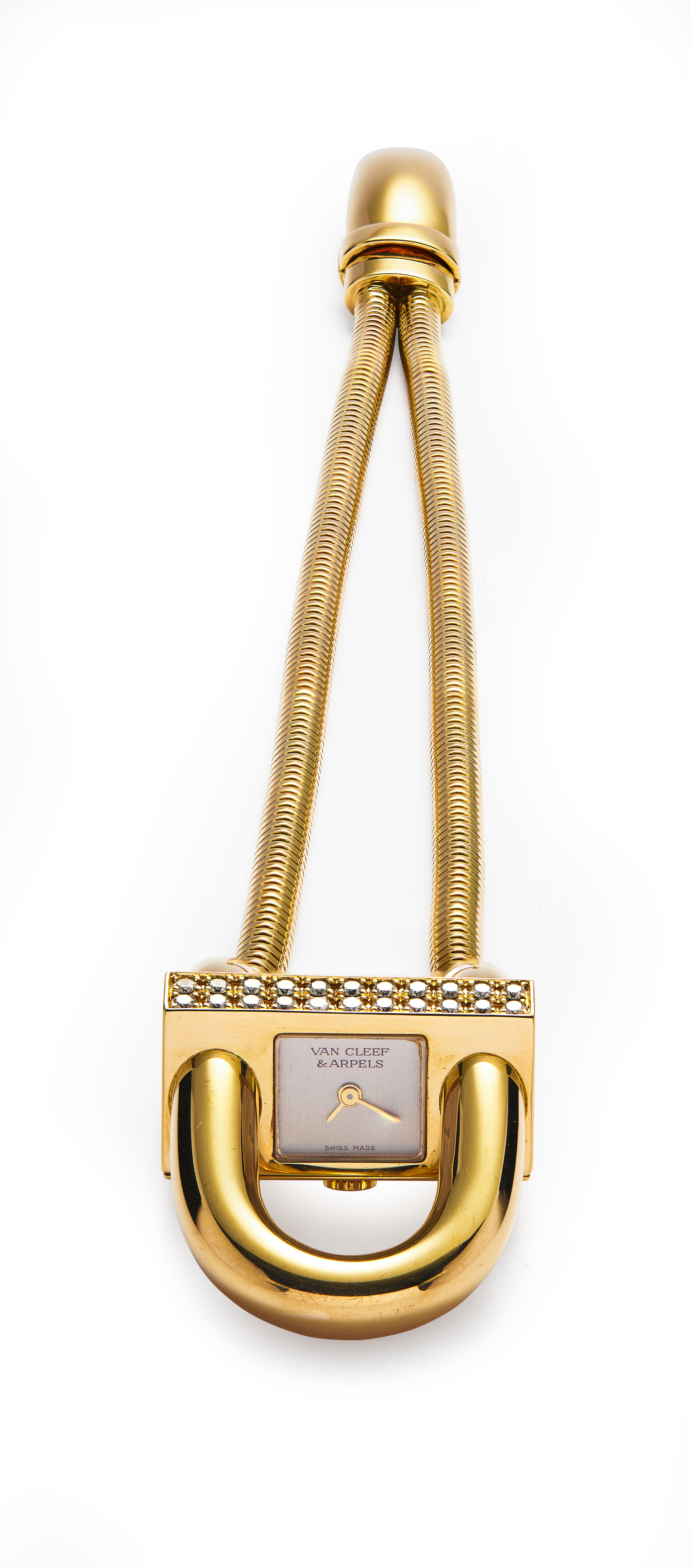 The Cadenas bracelet watch, meaning ‘lock' in French, combines both form and function for its wearer. Widely acknowledged as one of the most iconic timepieces ever made, it is said that Wallis Simpson, later the Duchess of Windsor, suggested this design to Van Cleef and Arpels in 1935 as it was deemed unsightly in the early 1900s for a woman to wear a wristwatch in public. Cased in a bracelet design, the Cadenas dial is designed at an angle so only the wearer can subtly check the time. King Edward VIII presented the very first Cadenas watch to Wallis in 1936. Soon thereafter Van Cleef and Arpels entered the model into commercial production and it proved to be extremely popular. The current model is a tribute to its predecessor.