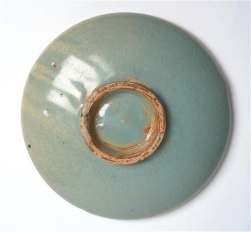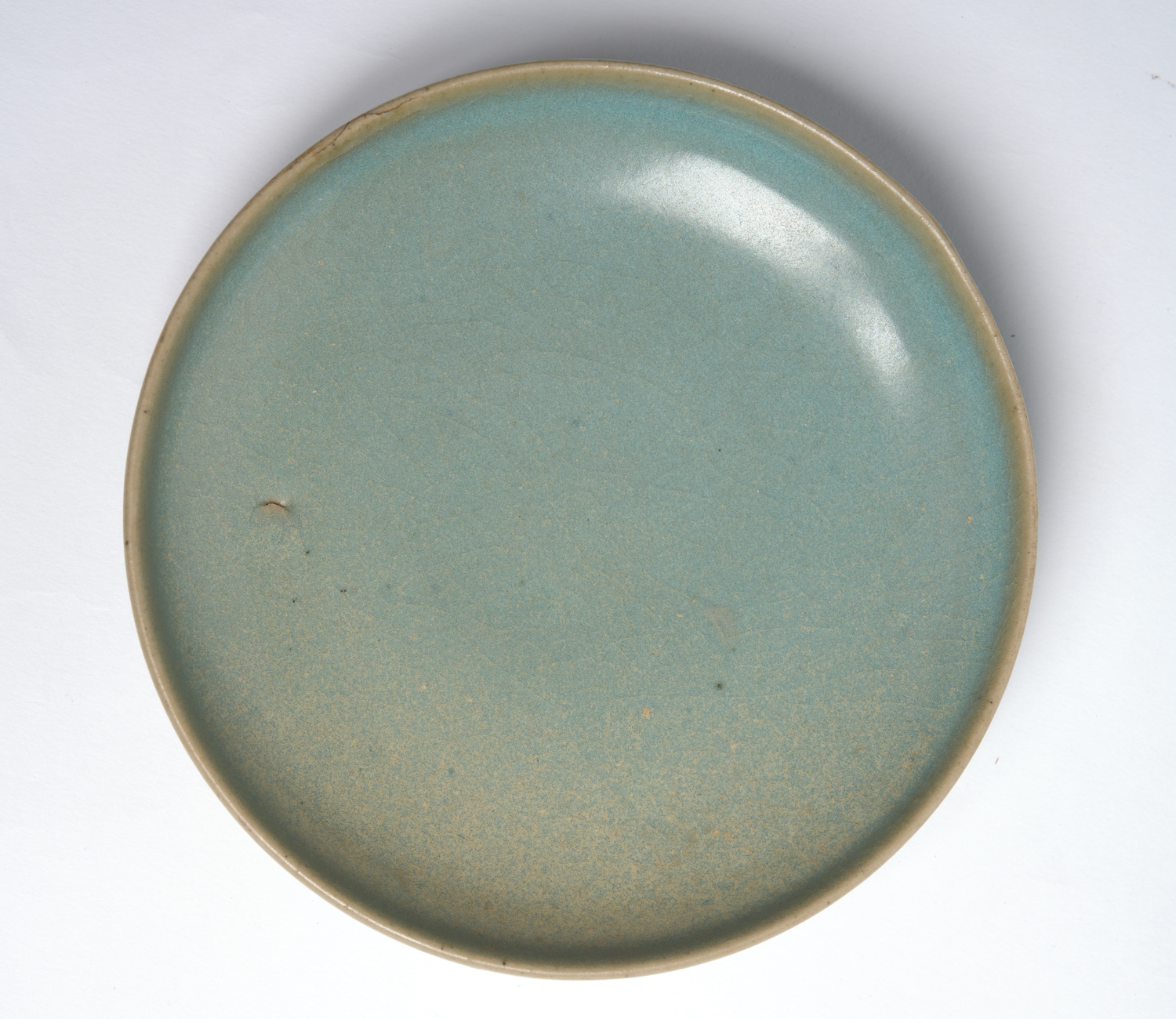 Some discolouration to the glaze to one section. A small bruise to one section of the rim with small associated cracks.