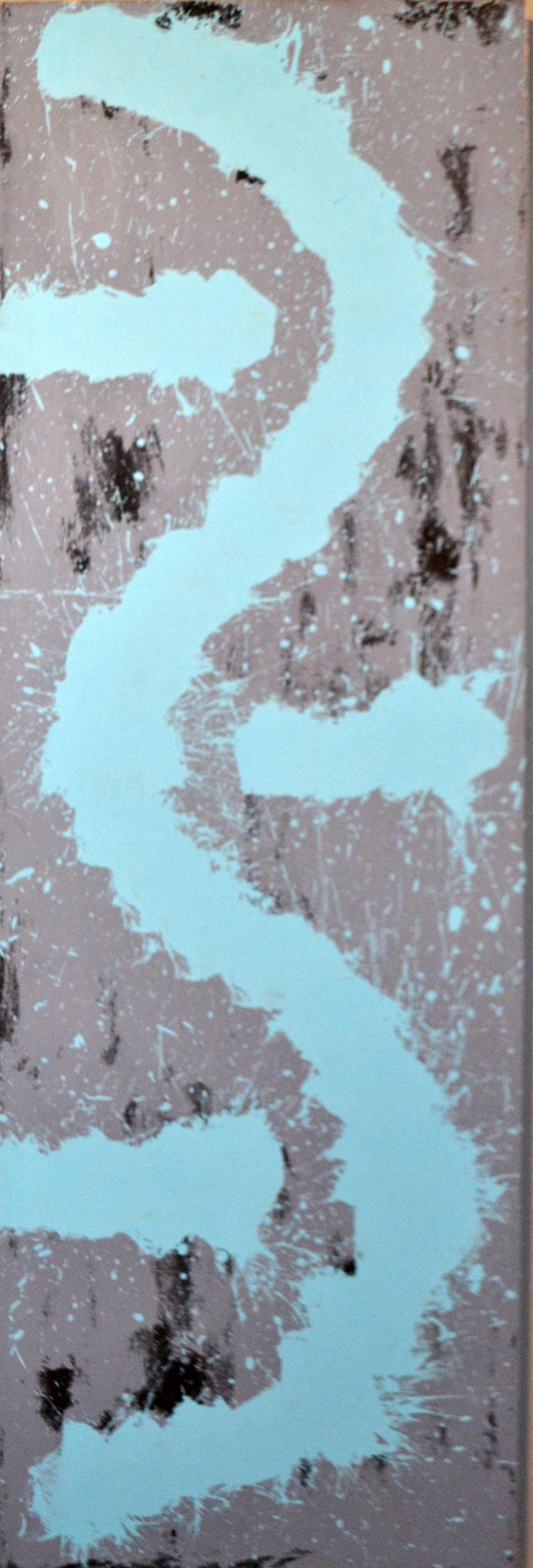 DAVID BROMLEY, UNTITLED (PLAYTIME), ACRYLIC AND SILVER LEAF ON CANVAS, 153 X 120CM, TEAR LOWER LEFT APPROX. 7CM