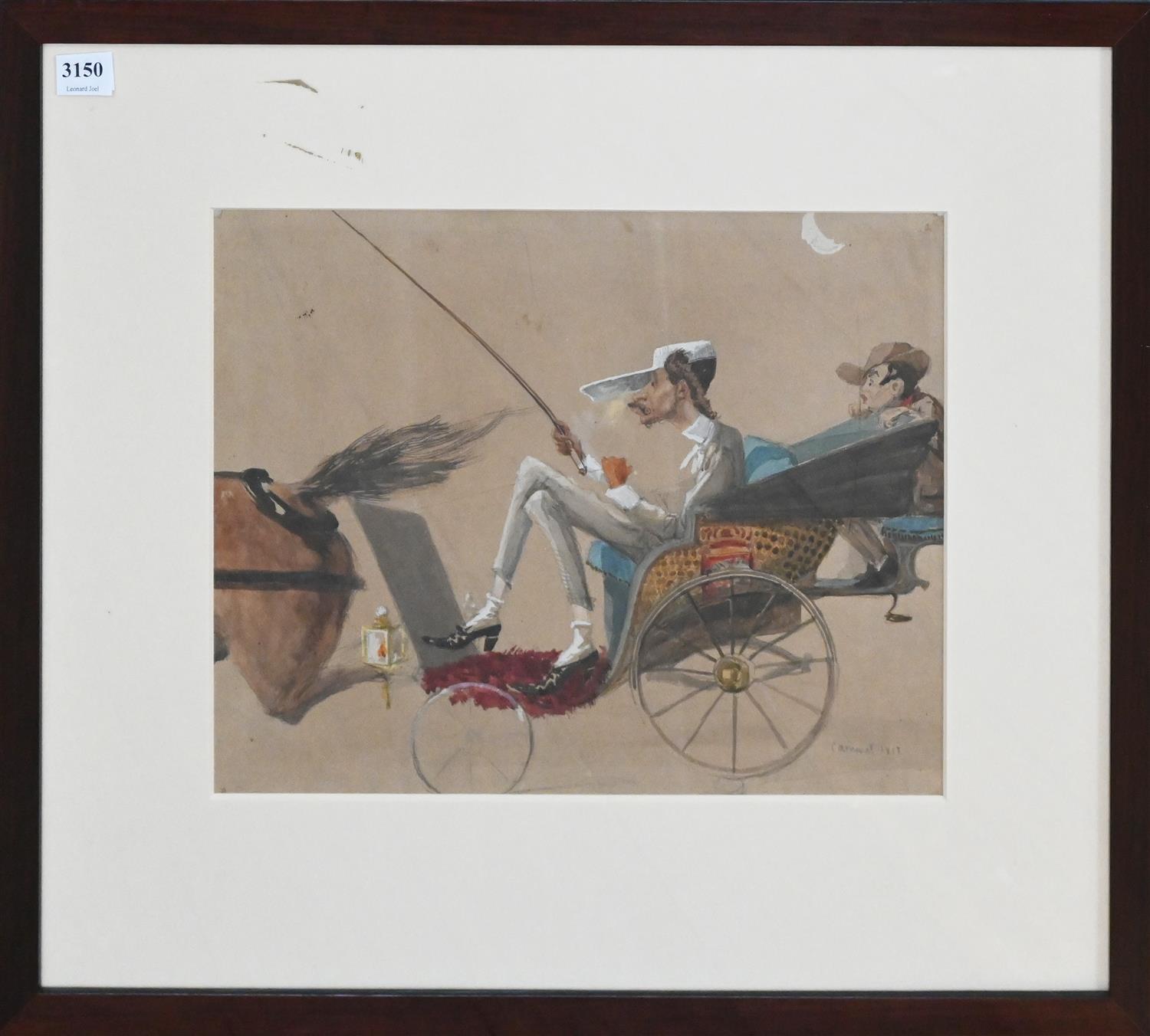 CONDITION: YELLOWING TO PAPER AND FOXING, CREASING, MARK ON THE GLASS, FRAMED