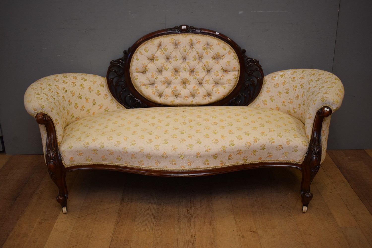 A VICTORIAN CARVED TIMBER SETTEE (A/F) (91H x 184W x 80D CM) (PLEASE NOTE THIS HEAVY ITEM MUST BE REMOVED BY CARRIERS AT THE CUSTOMER'S EXPENSE. LEONARD JOEL STAFF CANNOT ASSIST CARRYING THIS ITEM) (X-LARGE ITEM)