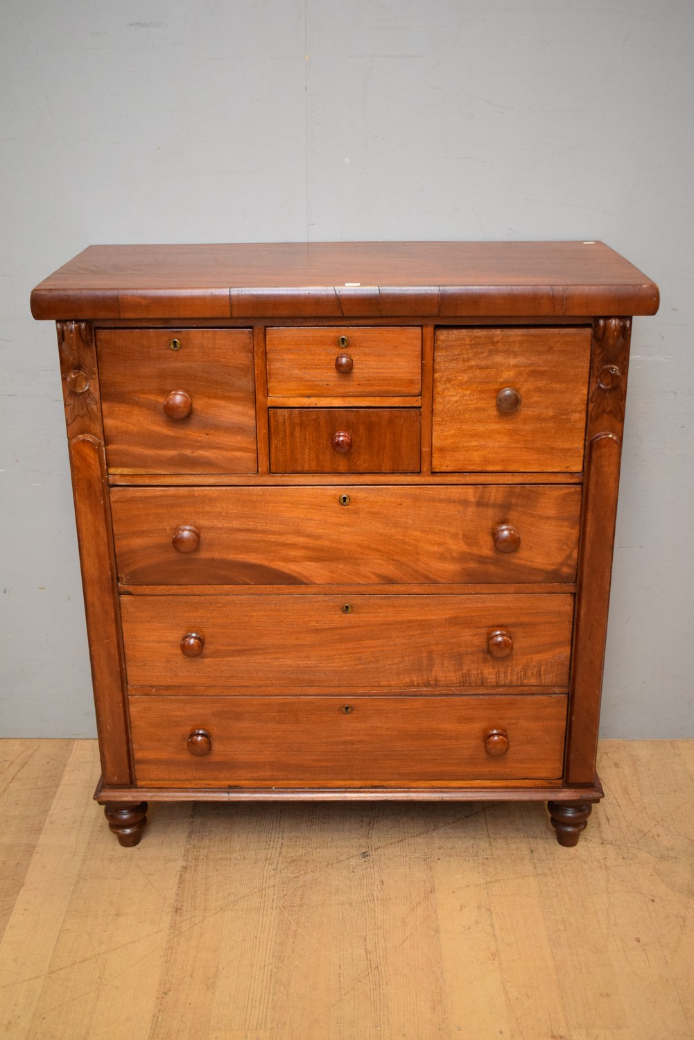 A SEVEN DRAWER TALL BOY (A/F) (123H x 108W x 50D CM) (PLEASE NOTE THIS HEAVY ITEM MUST BE REMOVED BY CARRIERS AT THE CUSTOMER'S EXPENSE. LEONARD JOEL STAFF CANNOT ASSIST CARRYING THIS ITEM) (X-LARGE ITEM)