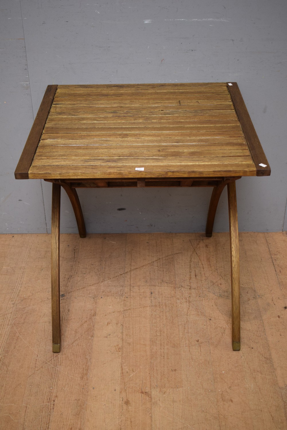 A TIMBER OUTDOOR TABLE (73H x 76W x 76D CM) (LEONARD JOEL DELIVERY SIZE: LARGE)