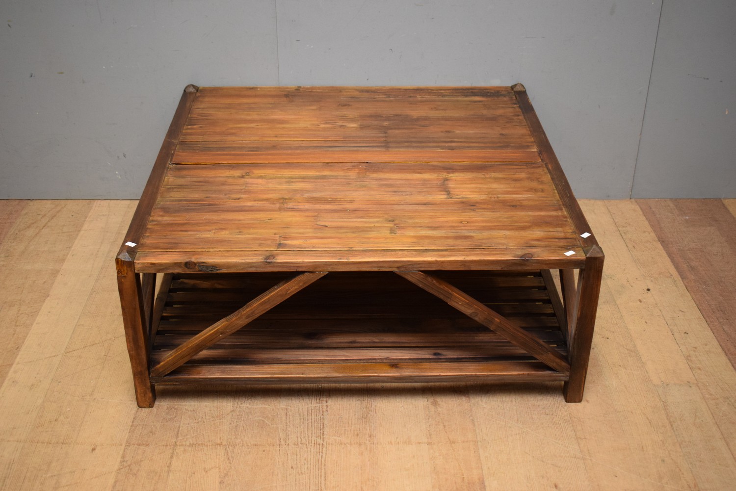 A SQUARE TIMBER COFFEE TABLE (41H x 100W x 100D CM) (LEONARD JOEL DELIVERY SIZE: LARGE)