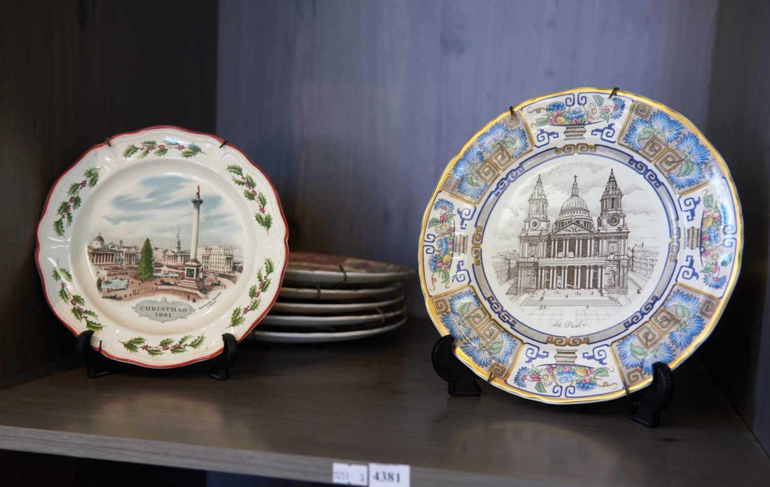 A SHELF LOT OF PLATES, LEONARD JOEL LOCAL DELIVERY SIZE: SMALL