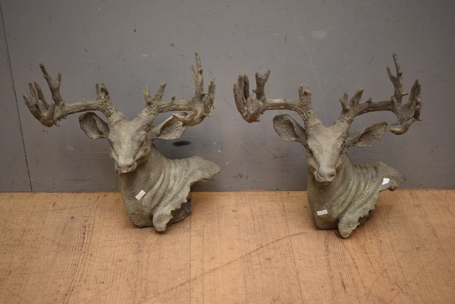 A PAIR OF CAST IRON DEER BUSTS (40H x 40W CM) (LEONARD JOEL DELIVERY SIZE: LARGE)