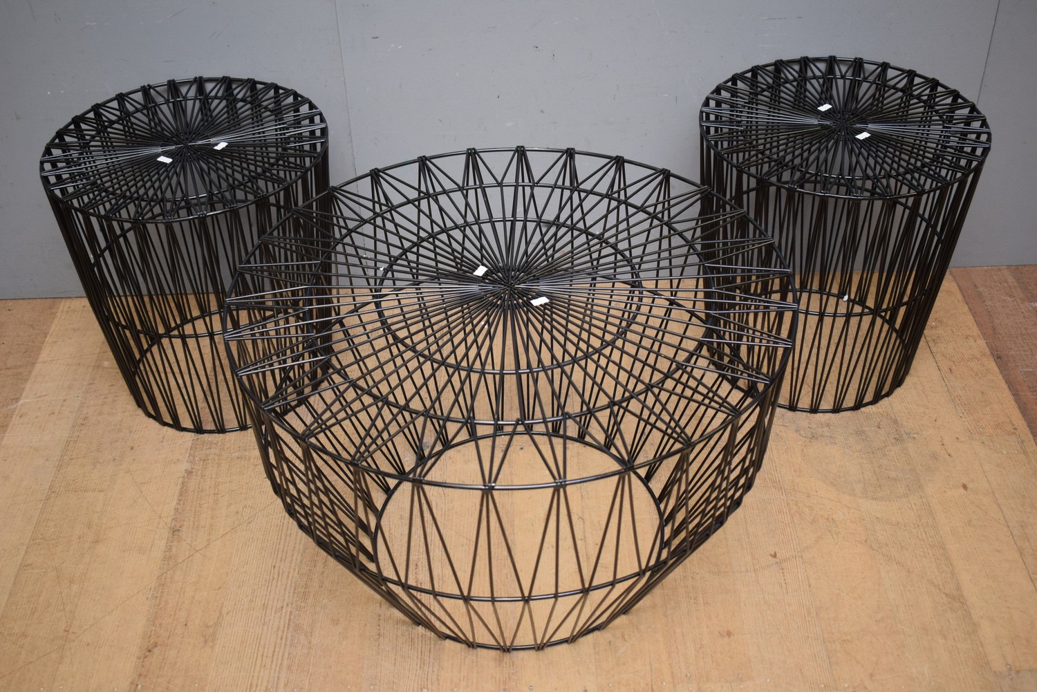 A WIRE EFFECT COFFEE TABLE WITH TWO MATCHING TABLES (H46 X D75 CM) (LEONARD JOEL DELIVERY SIZE: LARGE)