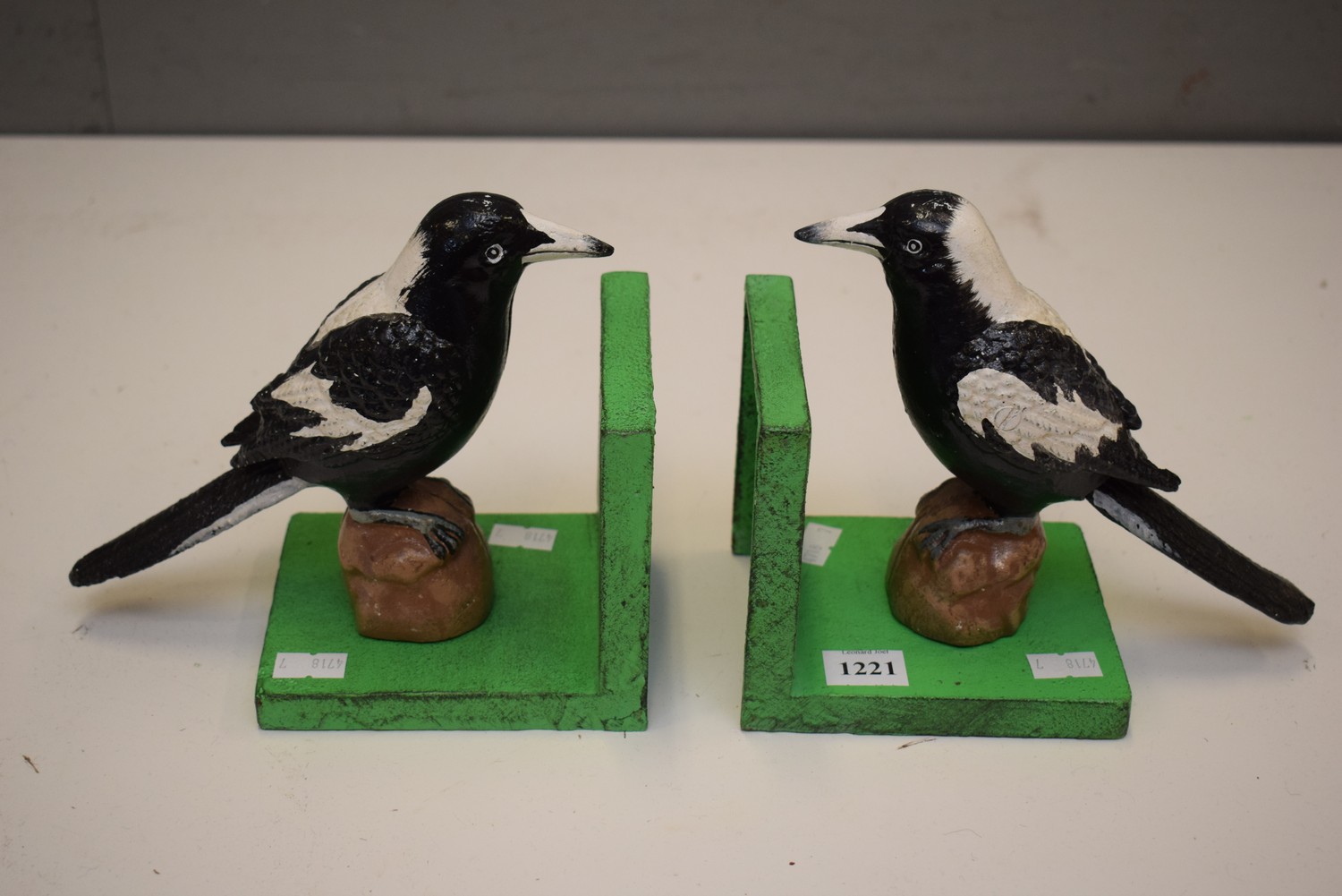 A PAIR OF MAGPIE BOOKENDS (16H CM) (LEONARD JOEL DELIVERY SIZE: SMALL)
