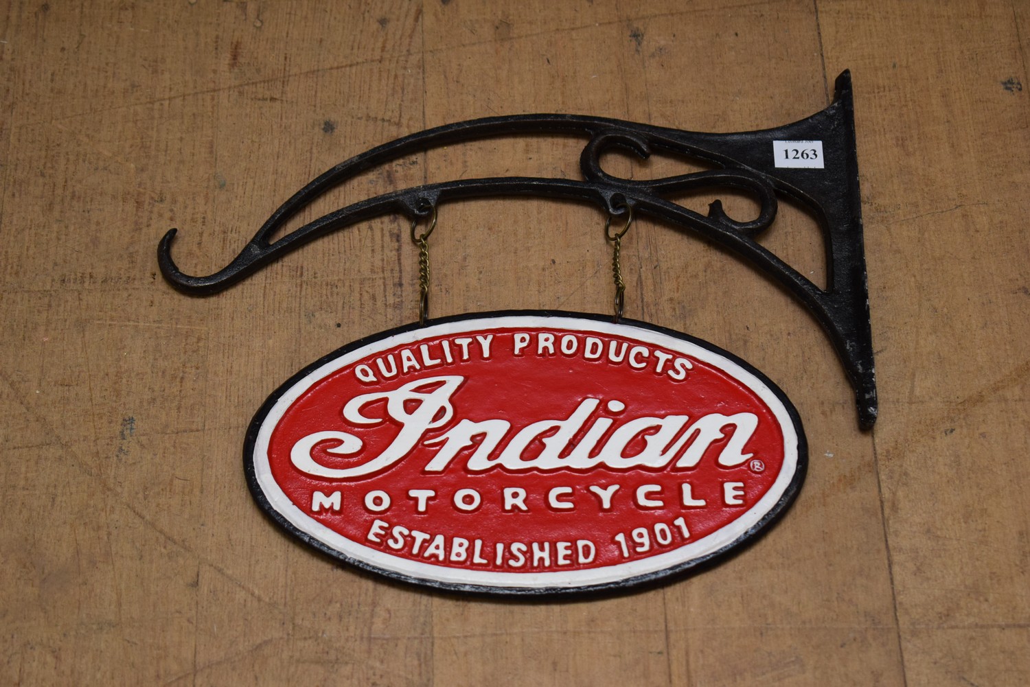 A HANGING INDIAN MOTORCYCLE SIGN (32H x 37W CM) (LEONARD JOEL DELIVERY SIZE: SMALL)