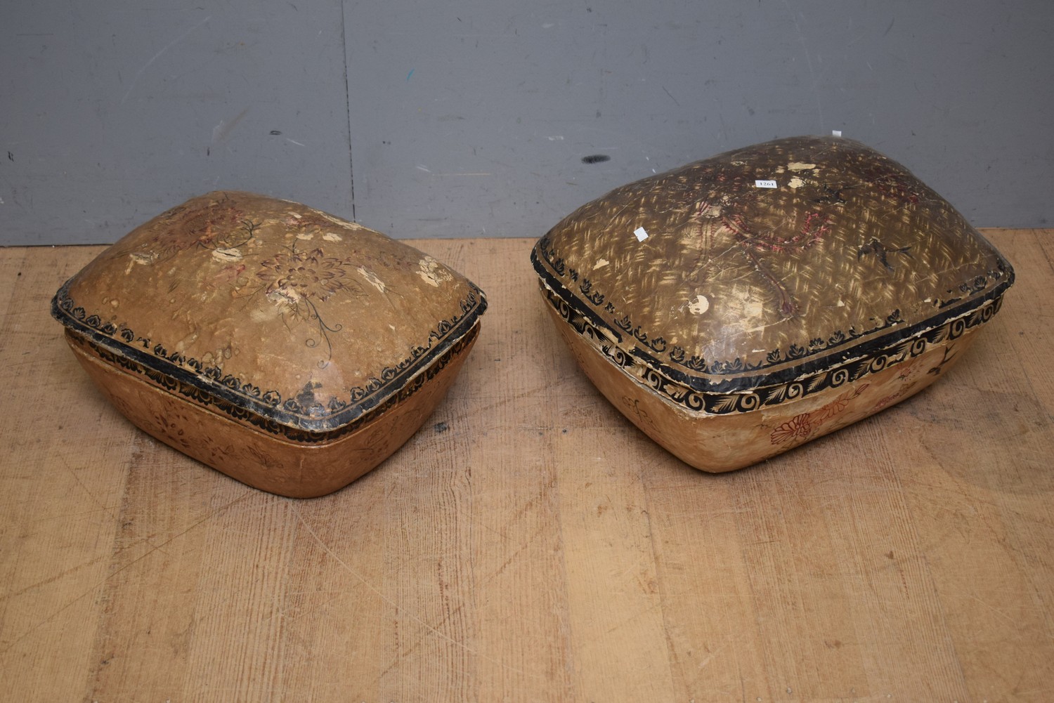 TWO JAPANESE PAPER MACHE STORAGE CONTAINERS (A/F) (34H x 53W x 42D CM) (LEONARD JOEL DELIVERY SIZE: SMALL)